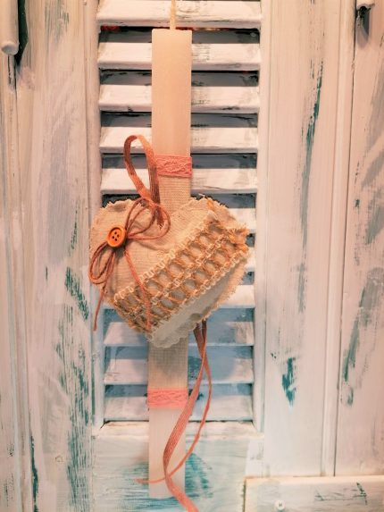 Πασχαλινή λαμπάδα υφασμάτινη καρδιά