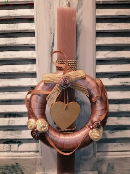 Πασχαλινή λαμπάδα στεφανάκι με καρδιά ροζ-σάπιο μήλο