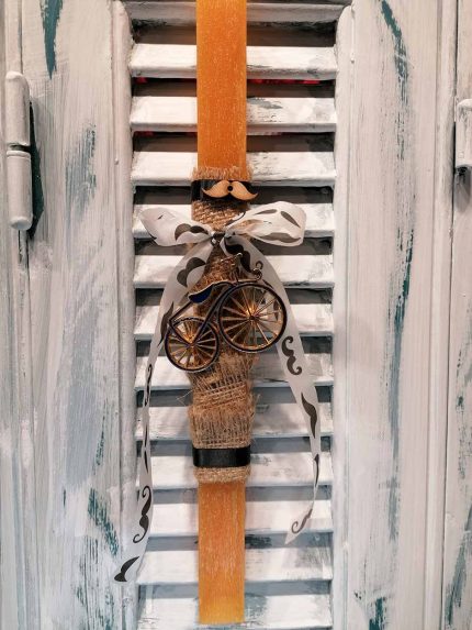 Πασχαλινή λαμπάδα “Χρυσό μεταλλικό ποδηλατάκι με μπλε σμάλτο”